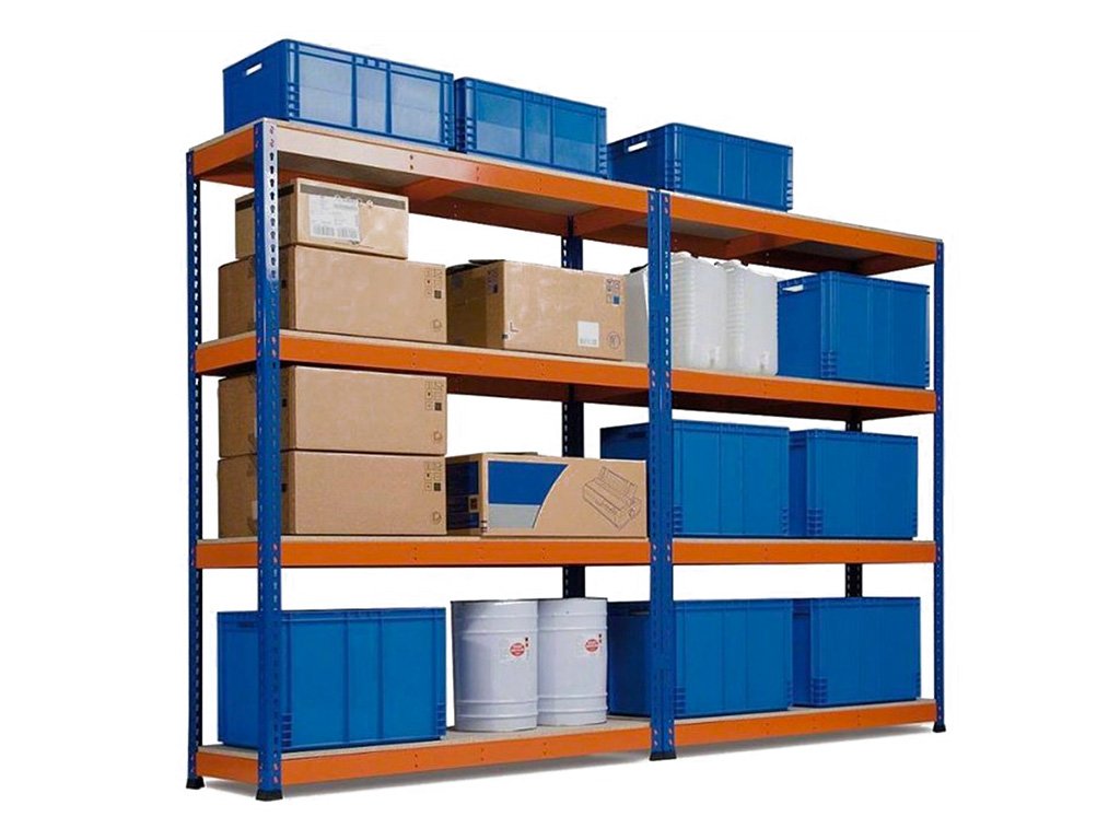 Raft 180x160x45 cm industrial PROFESIONAL lăcuit cu 4 nivele, portanta 1600 kg - ALBASTRU-PORTOCALIU
